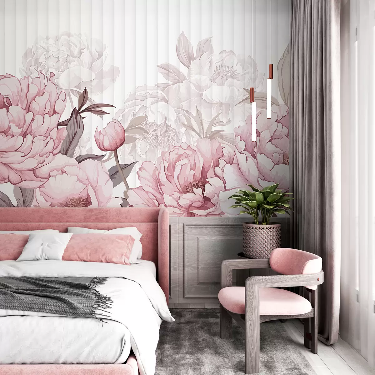 Murais de parede Um grande plano de grandes e delicadas flores de peónia cor-de-rosa e brancas sobre um fundo suave e texturado Nr. w08255