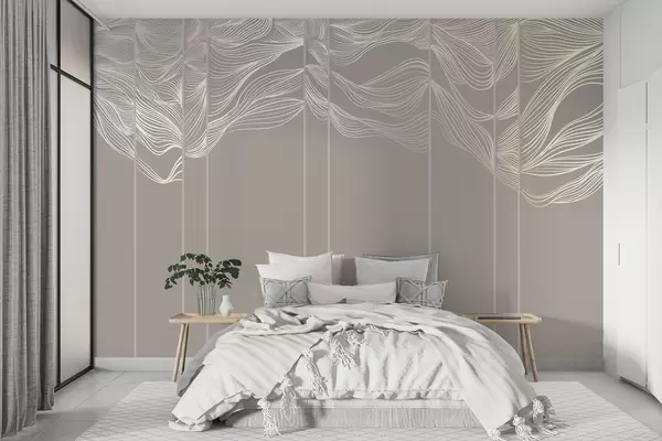 Murais de parede Ondas fluidas de linhas abstractas brancas sobre um fundo castanho claro Nr. w08263