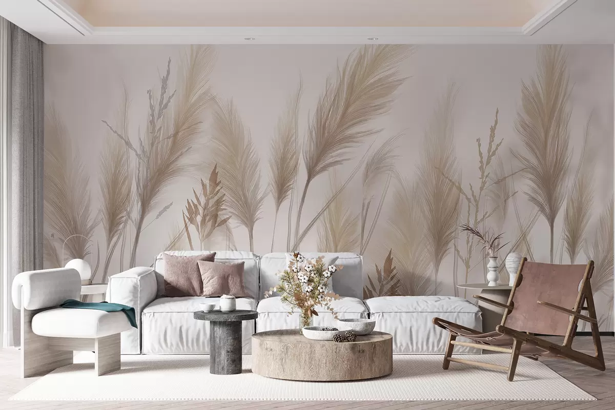 Murais de parede Espigas de relva bege alta balançando ao vento contra um fundo suave e claro Nr. w08268