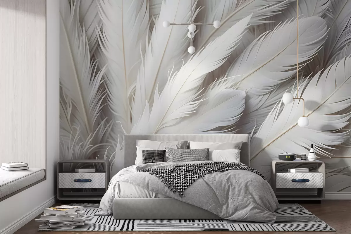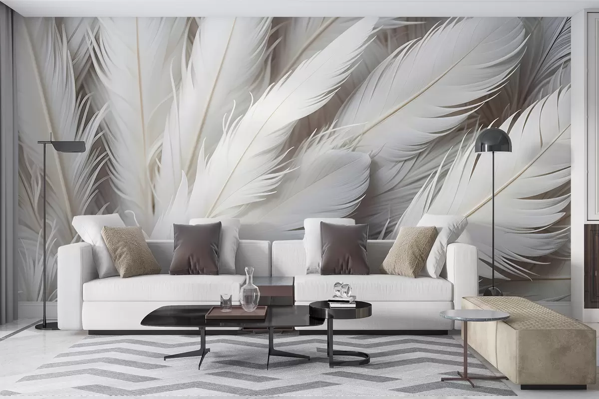 Murais de parede Penas brancas macias e fofas com uma textura delicada e fina sobre um fundo claro Nr. w08319