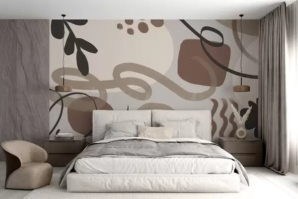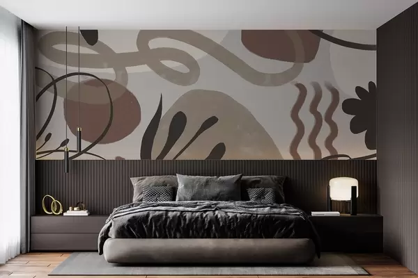 Murais de parede Estampa moderna minimalista com textura abstrata e formas em tons terra de castanho, bege e preto Nr. w08384