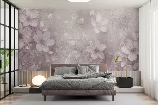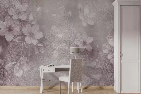 Murais de parede Desenho de flores brancas delicadas num fundo de bordo de renda com textura esbatida Nr. w08405v2