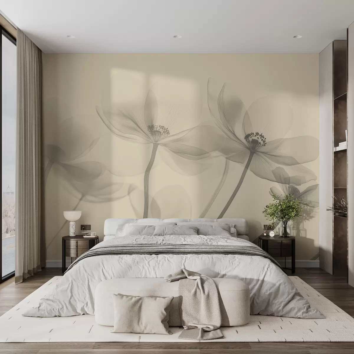 Murais de parede Flores silvestres arejadas num tom bege Nr. w08490