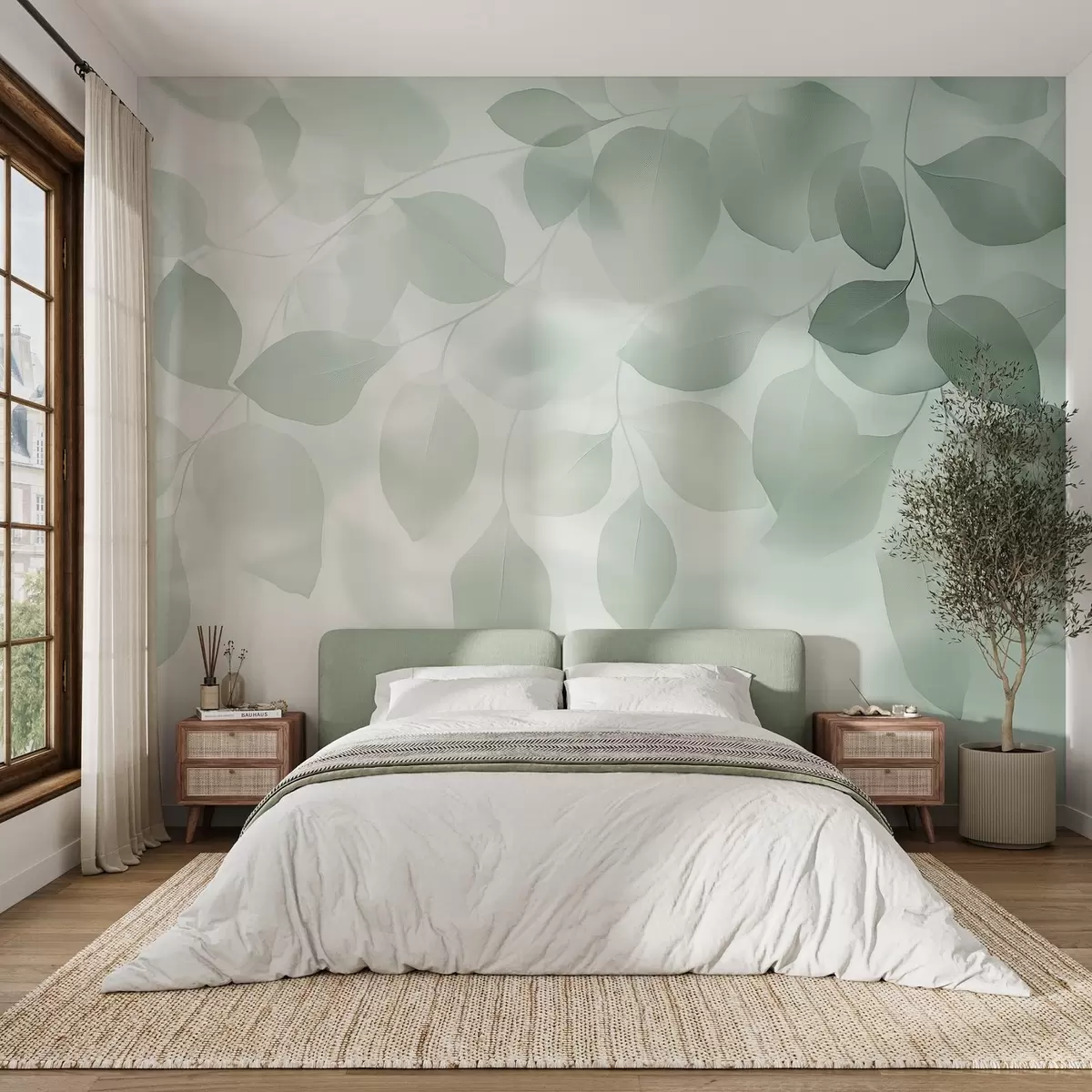 Murais de parede Abstração floral de folhas em tons de verde Nr. w08492v1