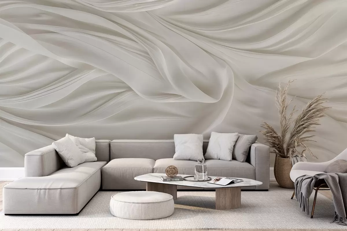 Murais de parede Estampado moderno com imitação de tecido branco liso e fluido com pregas e dobras suaves e ondulantes Nr. w08537