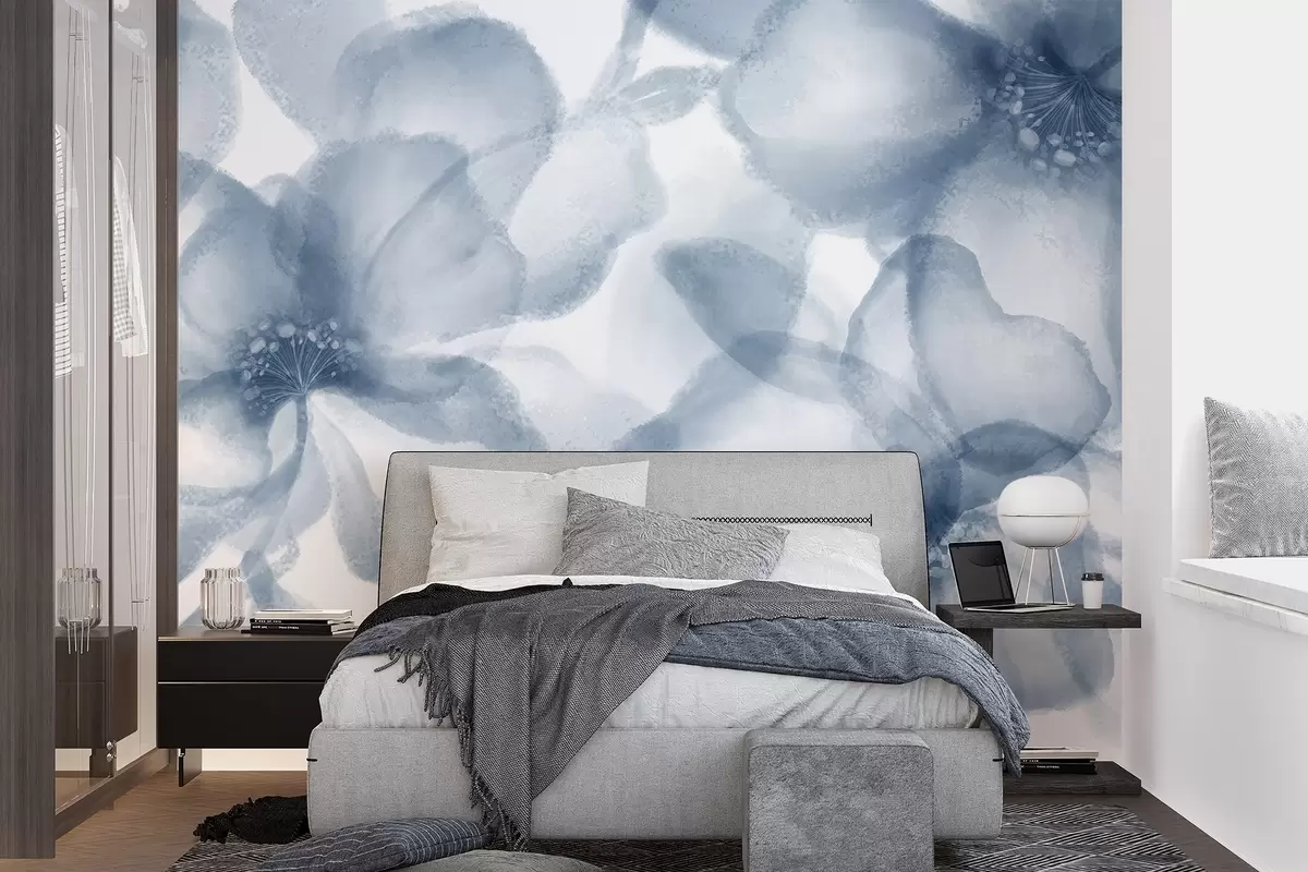 Murais de parede Flores azuis abstractas suaves e esbatidas que criam um estampado floral sereno e calmante Nr. w08607