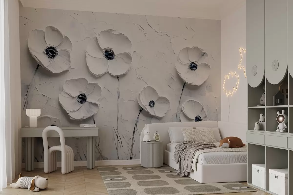Murais de parede Flores cinzentas elegantes com imitação de pinceladas Nr. w08632