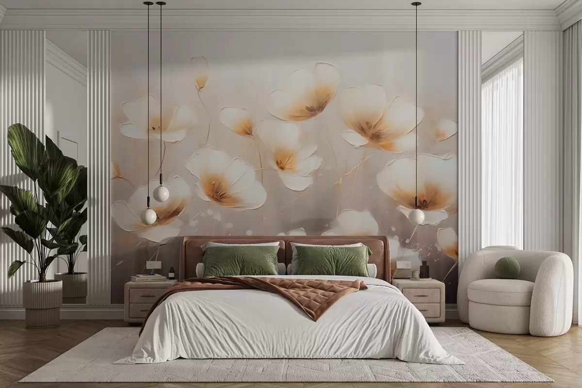 Murais de parede Flores elegantes com pétalas delicadas e suaves em tons quentes Nr. w08746