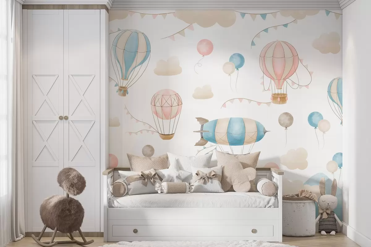 Murais de parede Desenho de aguarela para crianças com balões Nr. w08765
