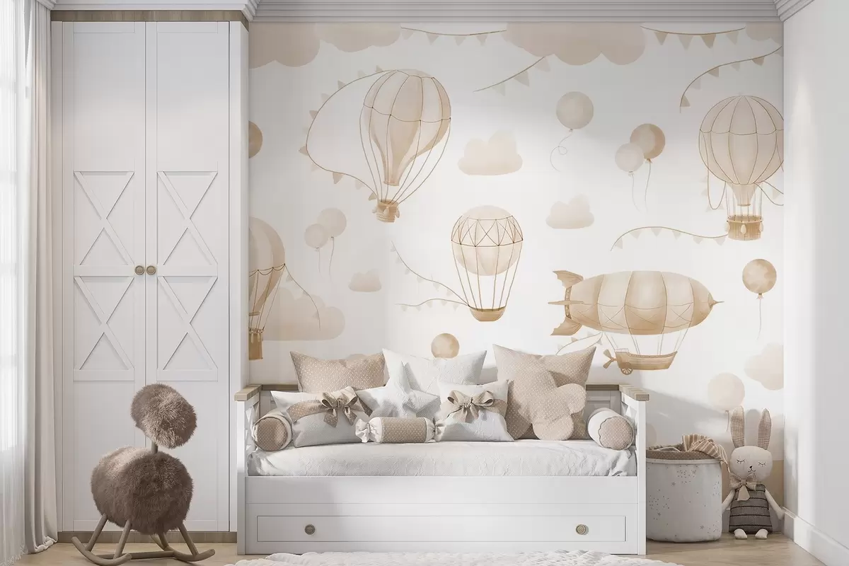 Murais de parede Desenho de aguarela para crianças com balões Nr. w08765v4