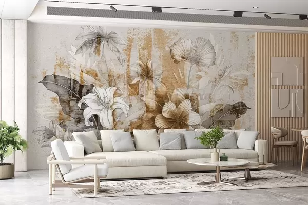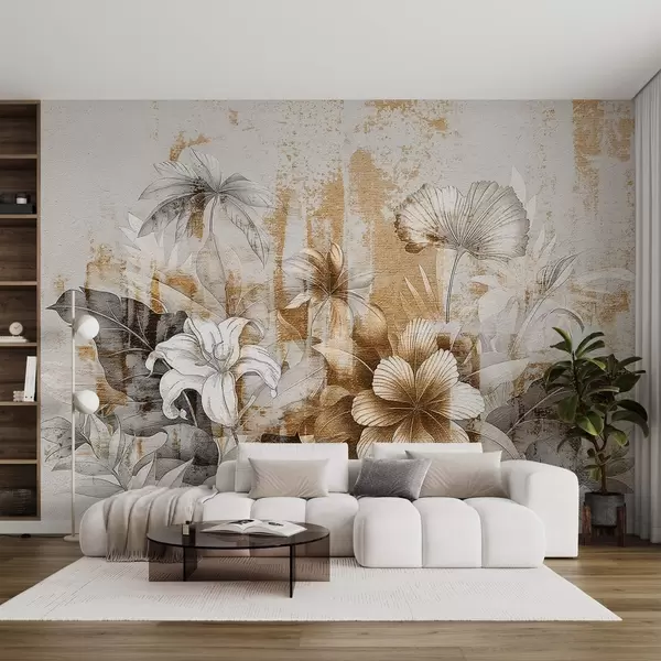 Murais de parede Design vintage com flores e plantas exóticas Nr. w08767