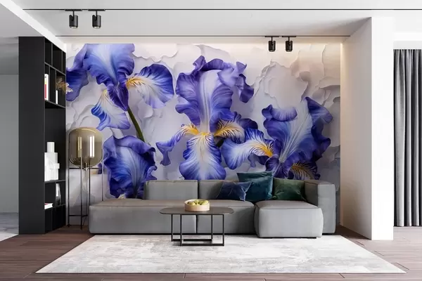 Murais de parede Íris brancas e azuis num estilo aguarela Nr. w08816