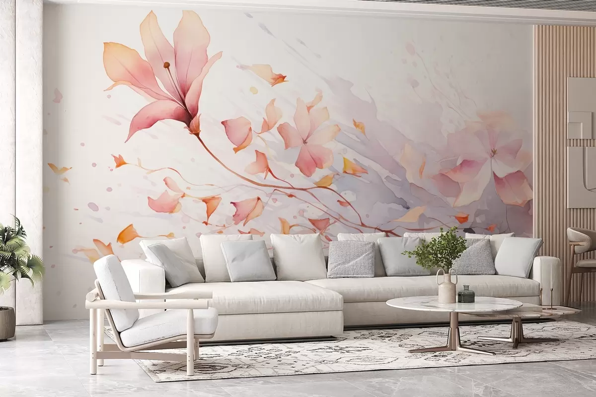 Murais de parede Uma flor com pétalas a cair e a esvoaçar ao vento num estilo aguarela Nr. w08821