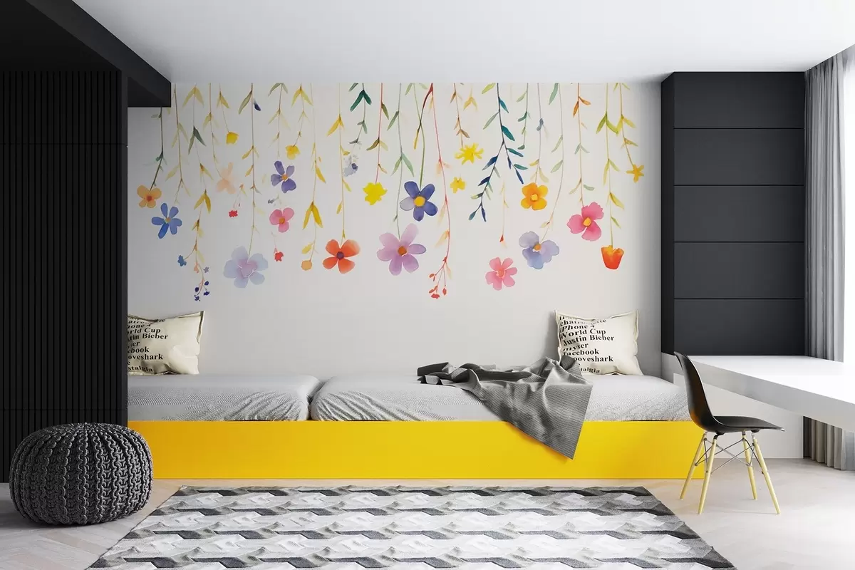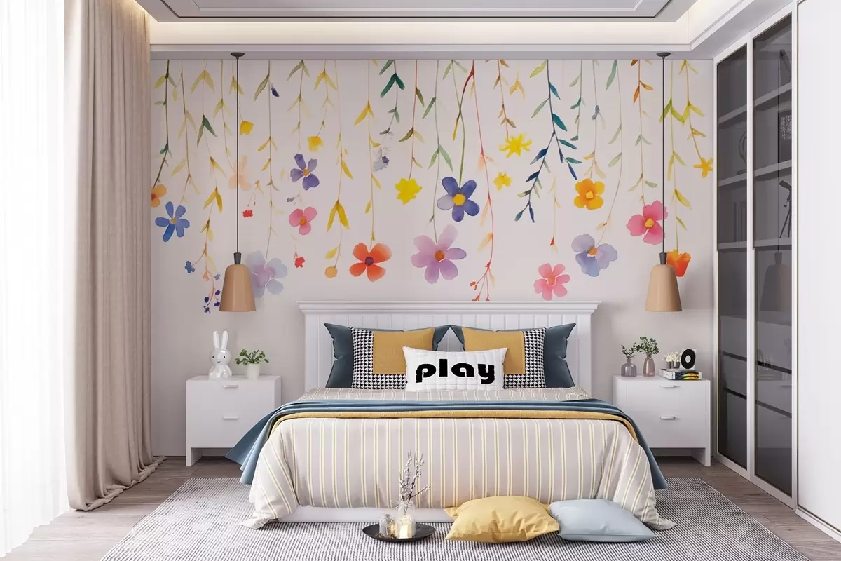 Murais de parede Flores silvestres em estilo aguarela, simples e coloridas Nr. w08851