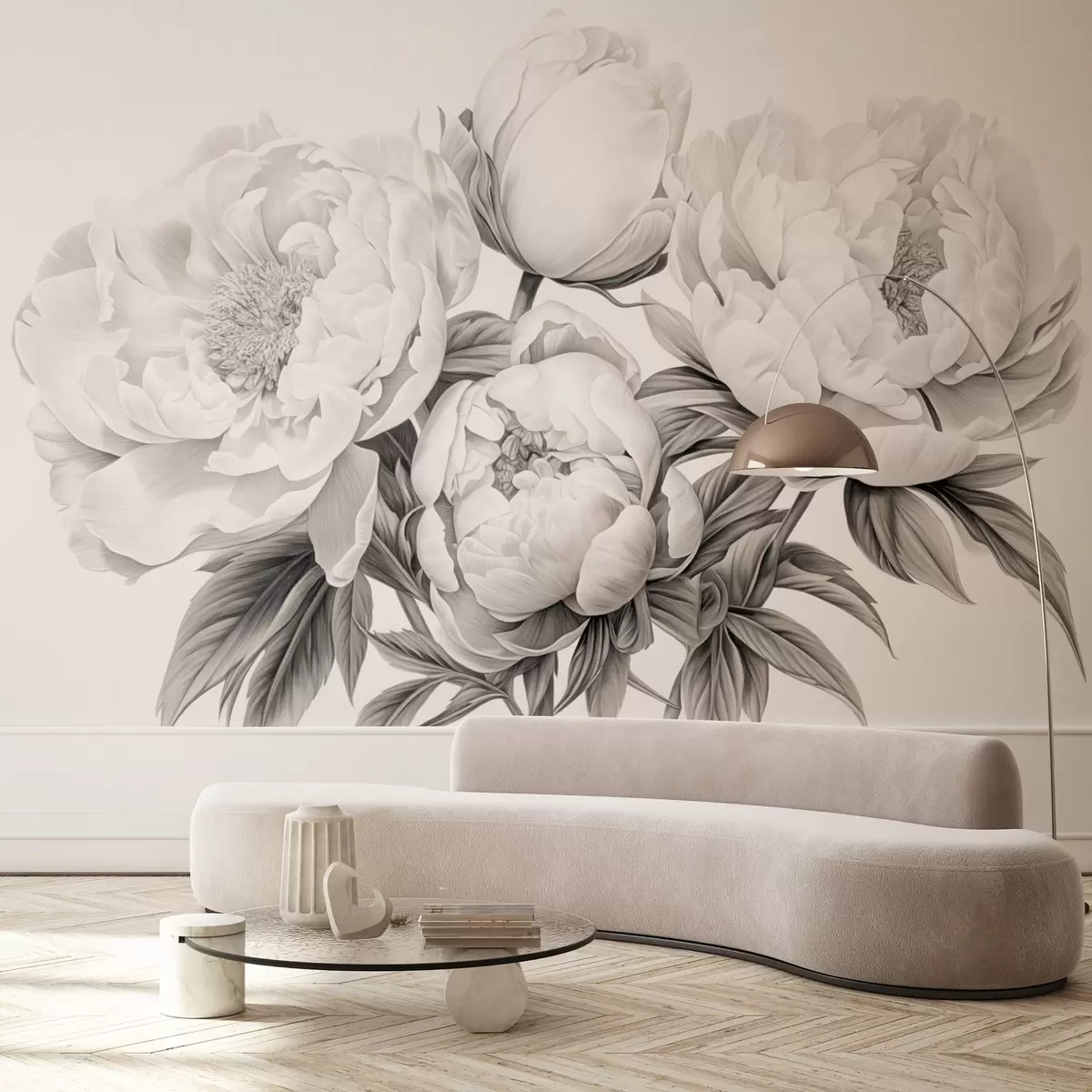 Murais de parede Peónias a preto e branco num estilo de desenho a lápis Nr. w08852