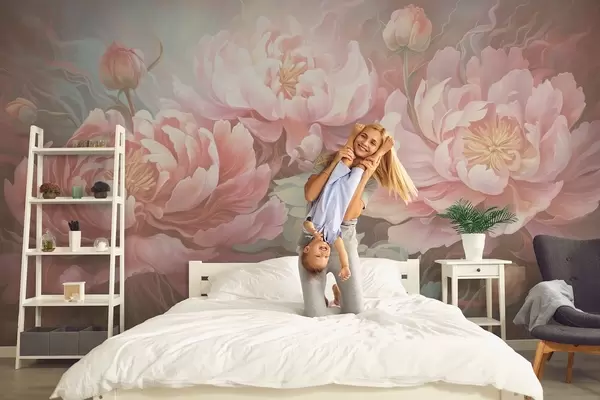 Murais de parede Peónias de conto de fadas num estilo de pincelada em tons quentes Nr. w08879v2