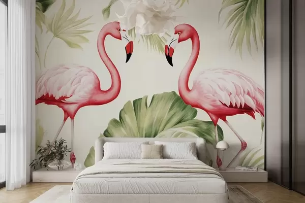 Murais de parede Par de flamingos em matagal tropical Nr. w08907