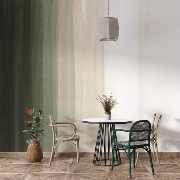 Murais de parede Impressão abstrata minimalista em gradiente com riscas verticais de verde escuro, bege e branco Nr. w08915