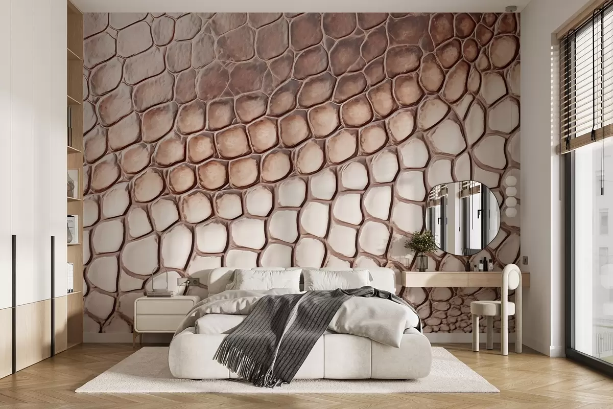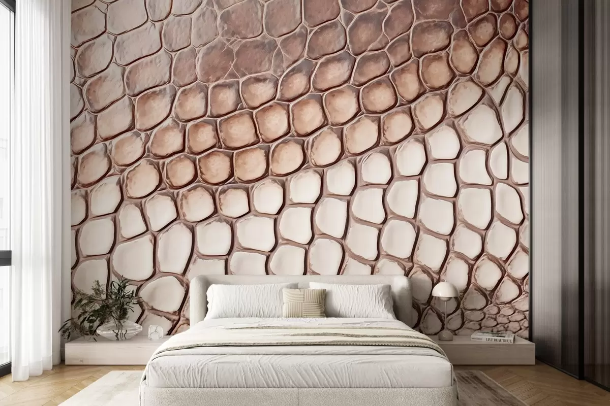 Murais de parede Pele de réptil branco-castanho, padrão de escamas Nr. w08957