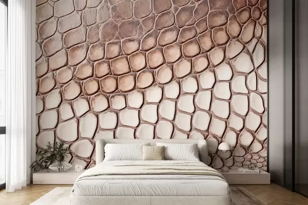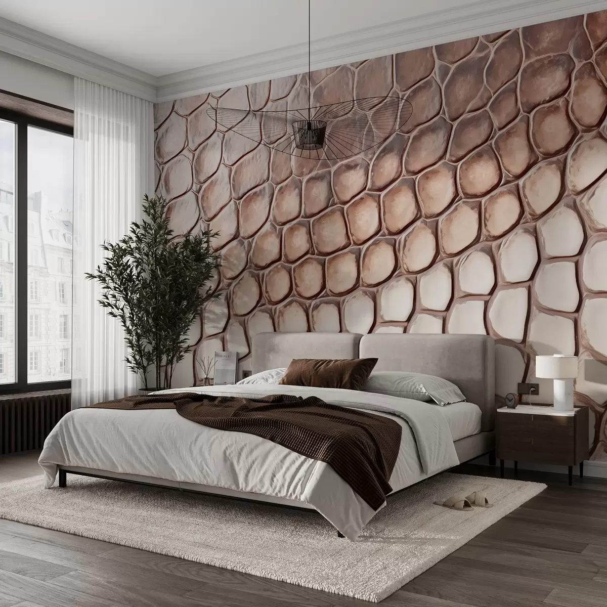 Murais de parede Pele de réptil branco-castanho, padrão de escamas Nr. w08957