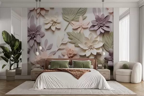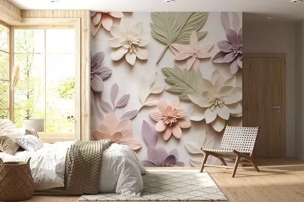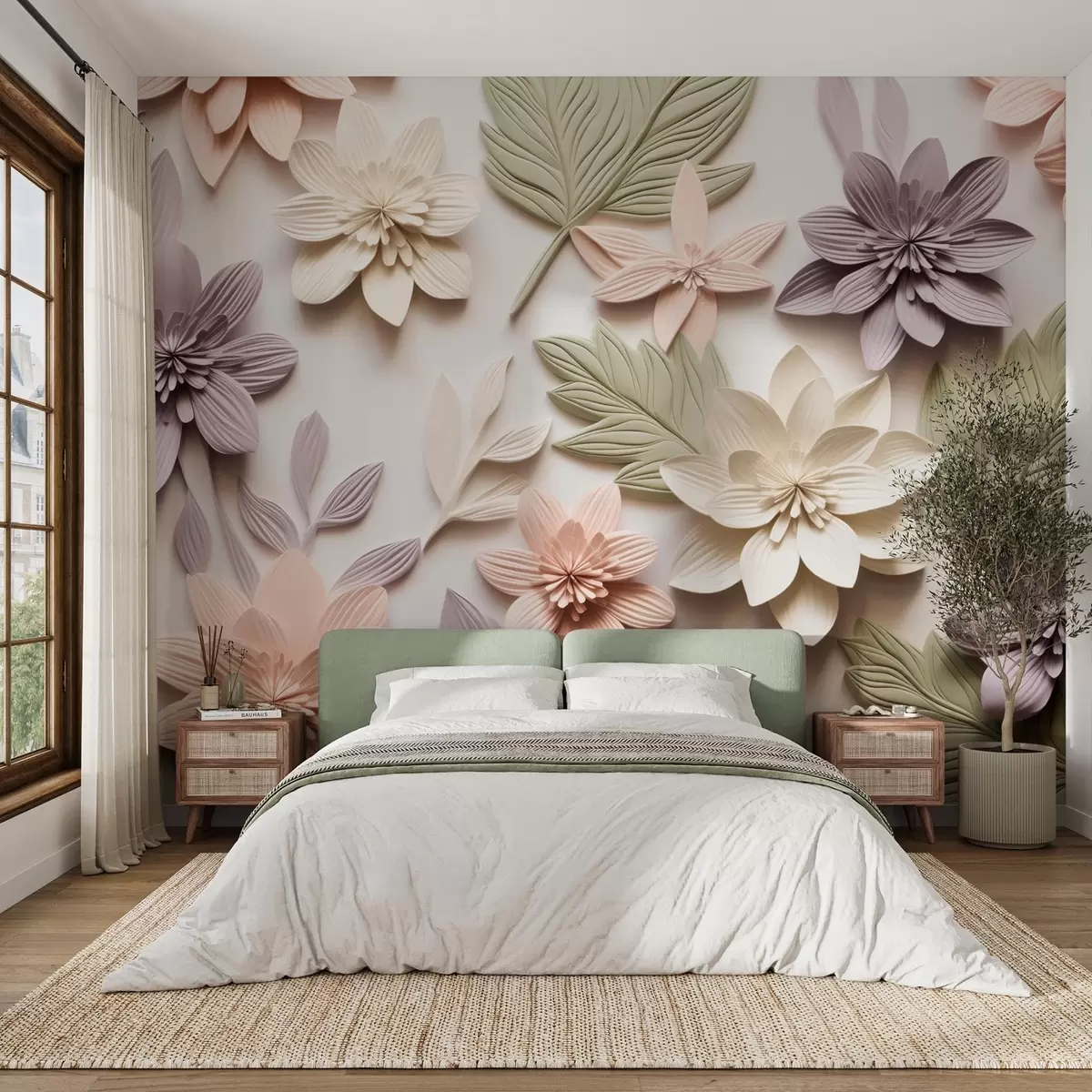 murais de parede relevo floral em 3D sob a forma de uma composição em papel w08958