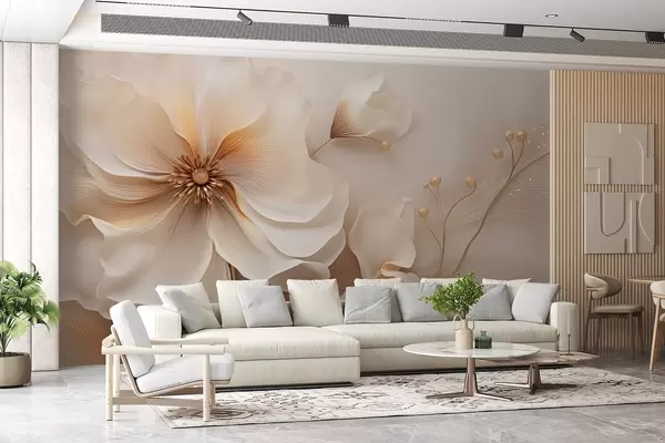 Murais de parede Relva selvagem bege e castanha clara com flores em tons de bege Nr. w08960