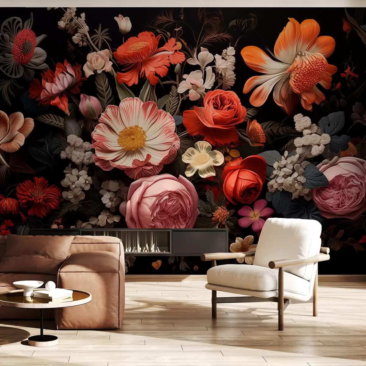 Murais de parede Ramo colorido de várias flores sobre um fundo escuro em tons quentes Nr. w08969