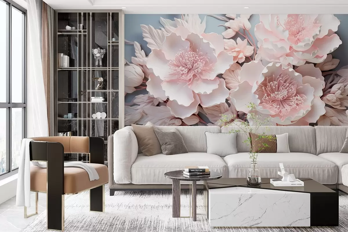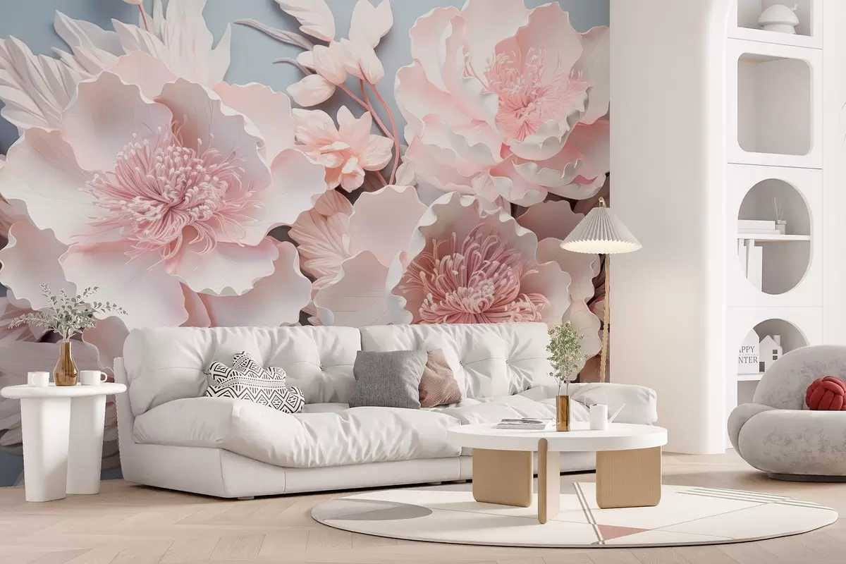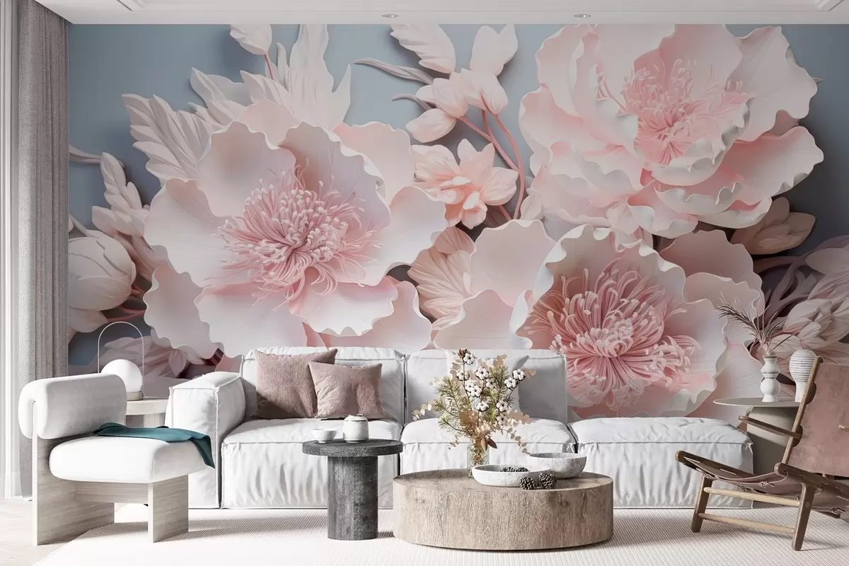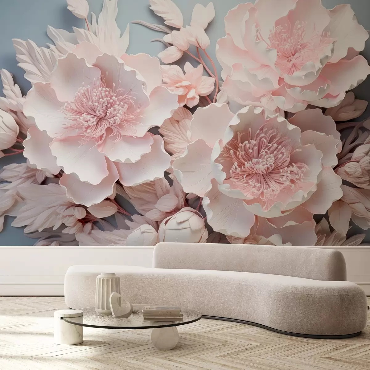 Murais de parede Flores cor-de-rosa volumosas em tons delicados Nr. w08988