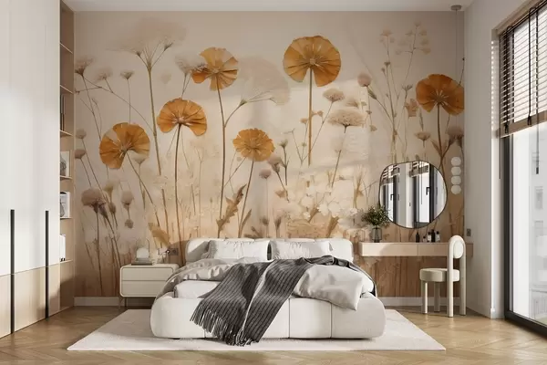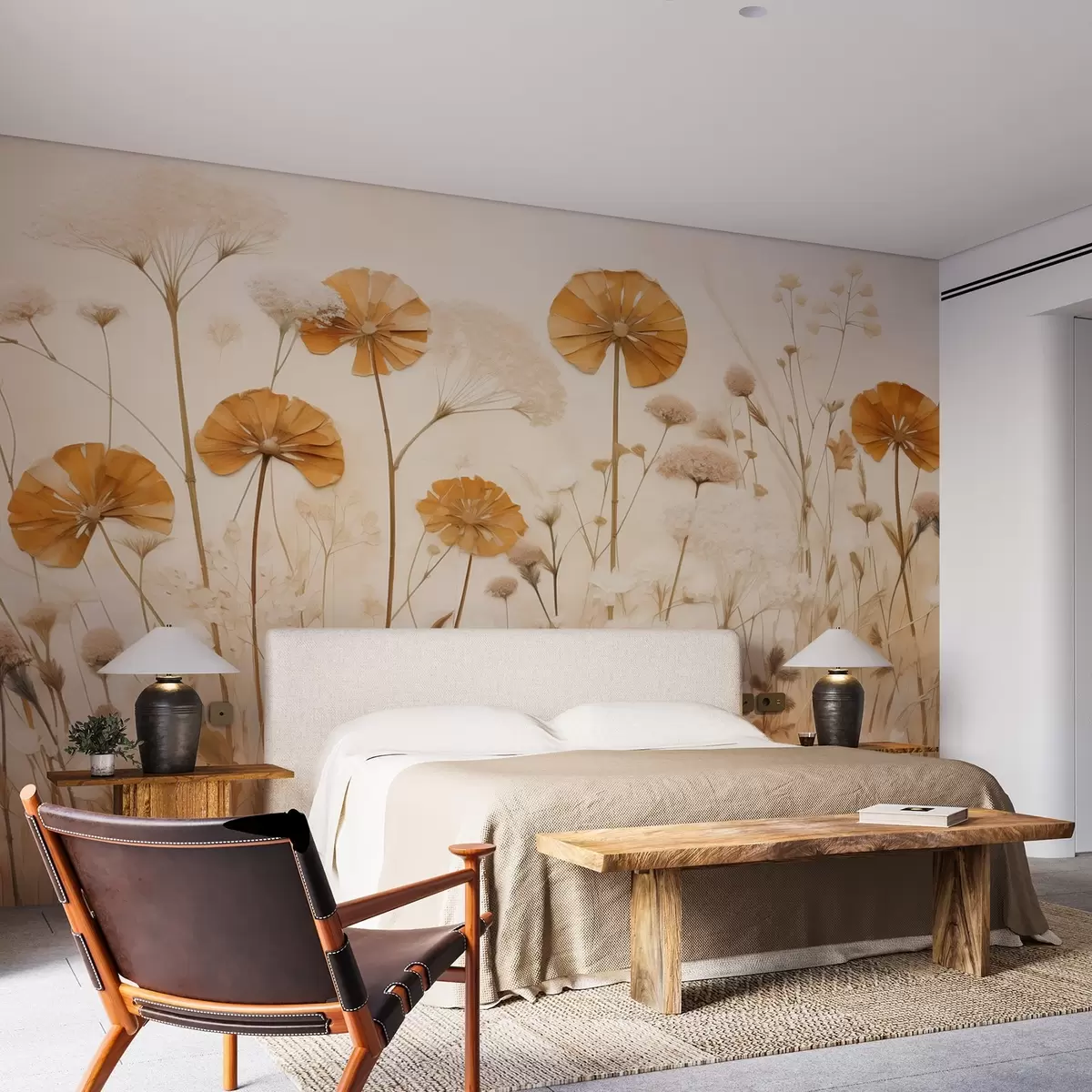 Murais de parede Flores silvestres com tonalidades amarelas em tons quentes Nr. w08994