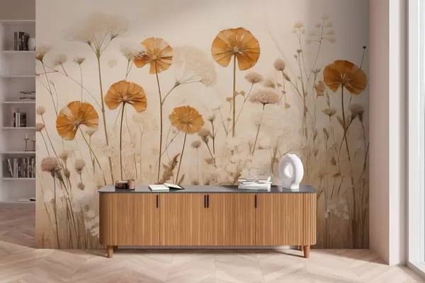 Murais de parede Flores silvestres com tonalidades amarelas em tons quentes Nr. w08994