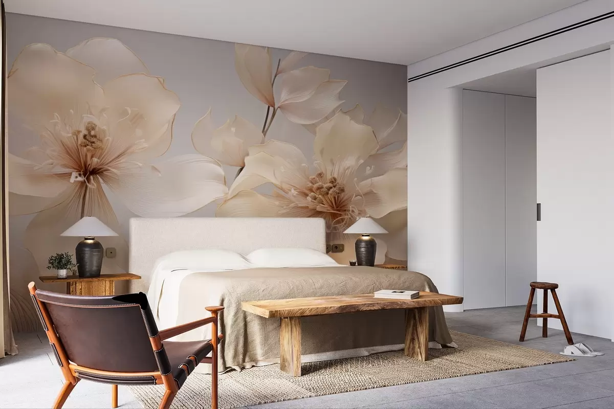 Murais de parede Flores de ar bege em tons suaves Nr. w09016