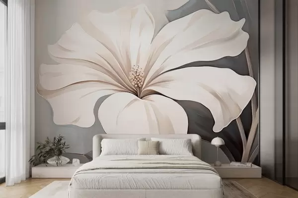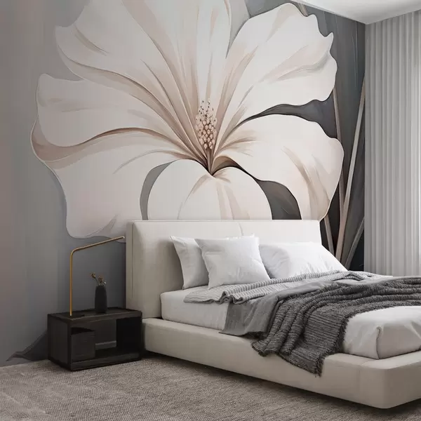 Murais de parede Grande flor branca com pétalas sobre um fundo cinzento-azulado Nr. w09033