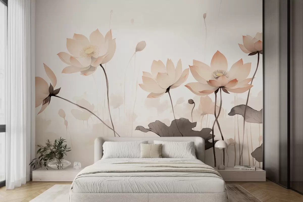 Murais de parede Nenúfares em delicados tons claros em estilo aguarela Nr. w09035