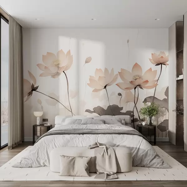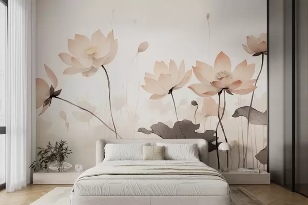 Murais de parede Nenúfares em delicados tons claros em estilo aguarela Nr. w09035