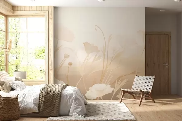 murais de parede Papoilas brancas em tons de bege e cinzento w09041