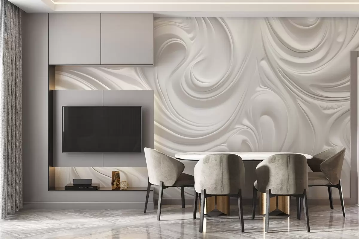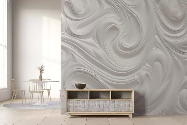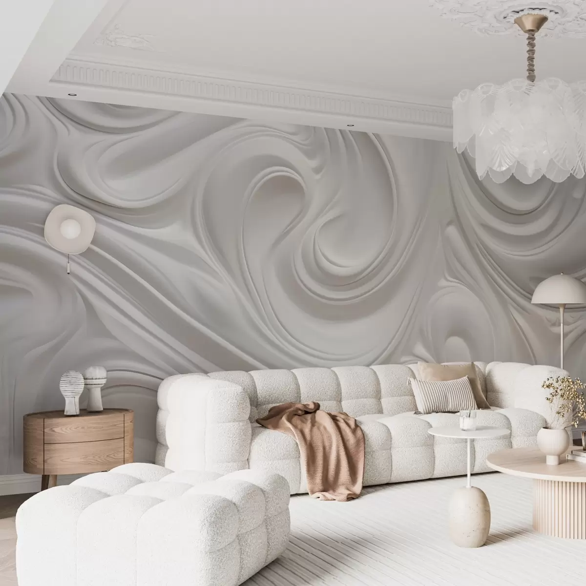 murais de parede Arte moderna abstrata branca com redemoinhos e ondas fluidas, textura suave, design elegante, estética minimalista w09059