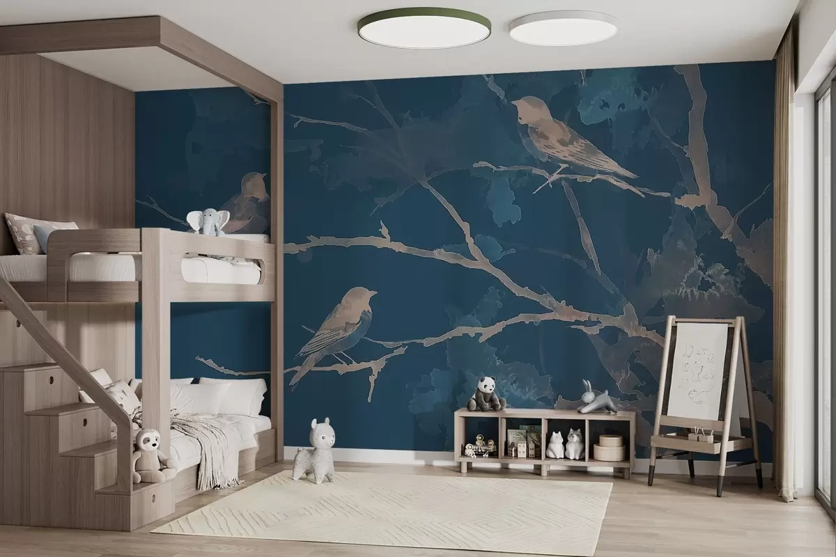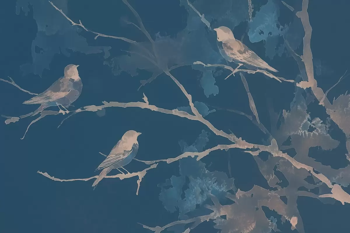 Murais de parede Pássaros nos ramos das árvores em estilo aguarela Nr. w09064v1