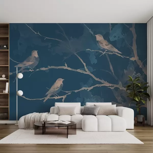 Murais de parede Pássaros nos ramos das árvores em estilo aguarela Nr. w09064v1