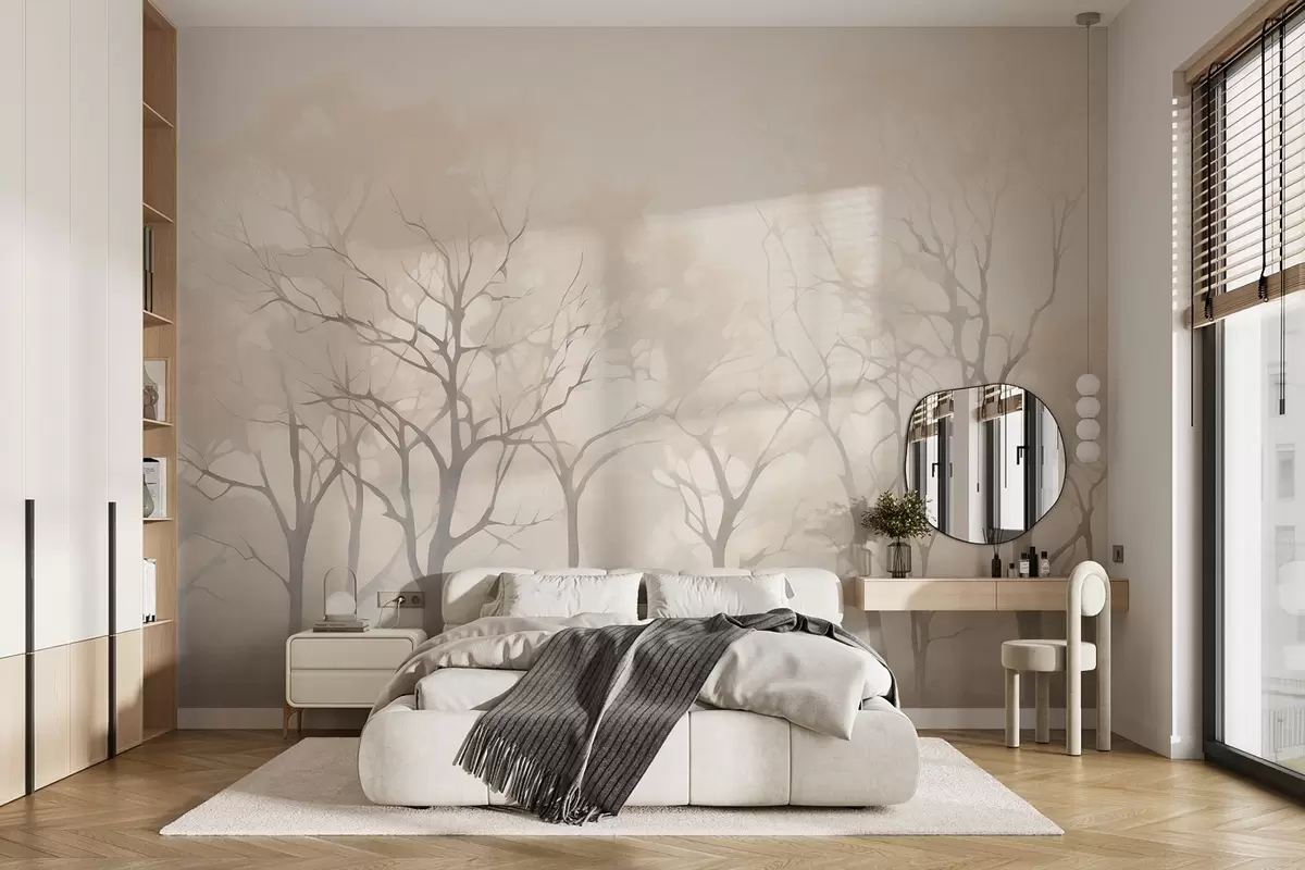 Murais de parede Árvores vintage monocromáticas no nevoeiro Nr. w09065