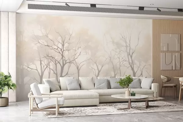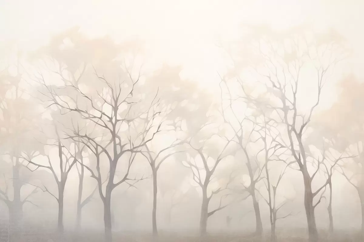 Murais de parede Árvores vintage monocromáticas no nevoeiro Nr. w09065