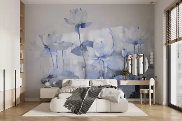 Murais de parede Delicadas flores de lótus pintadas com acrílico Nr. w09067v1