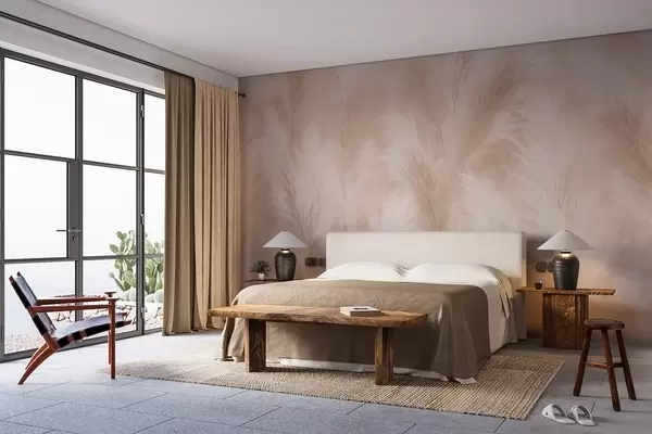 Murais de parede Erva-dos-pampas em tons de bege e rosa Nr. w09077