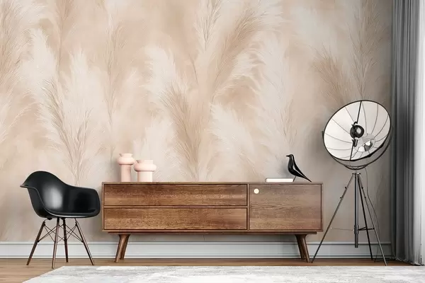 Murais de parede Erva-dos-pampas em tons de bege e rosa Nr. w09077