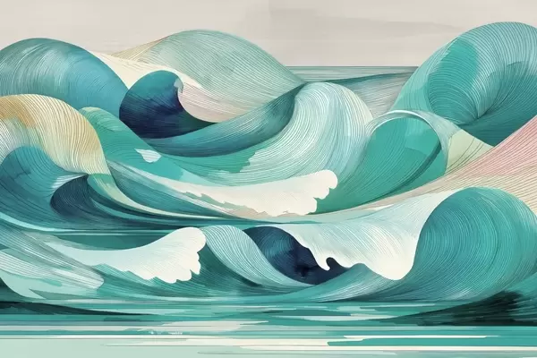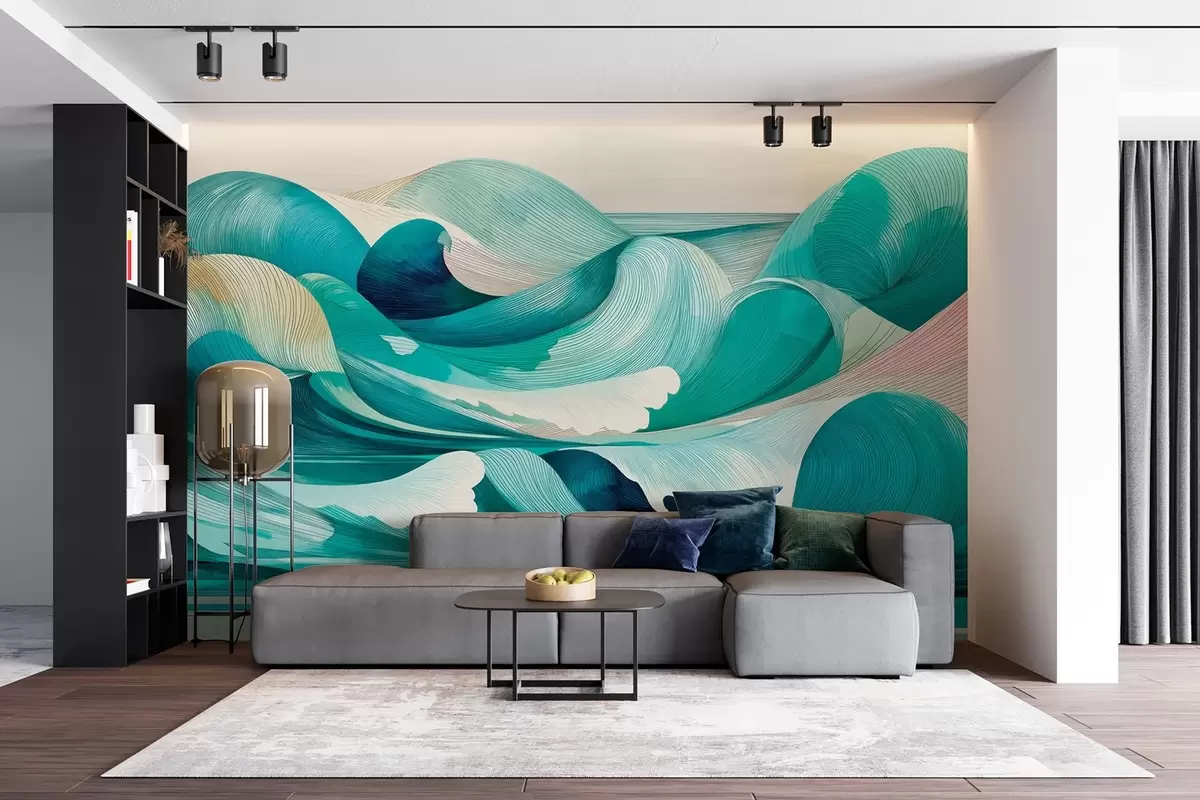 Murais de parede Ondas com linhas nas cores azul e turquesa Nr. w09078