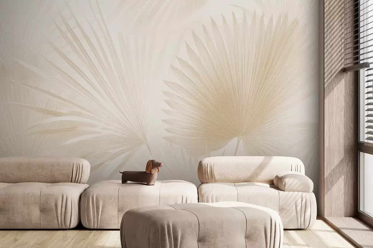 Murais de parede Leques de folhas tropicais suaves sobre um fundo claro Nr. w09084v1