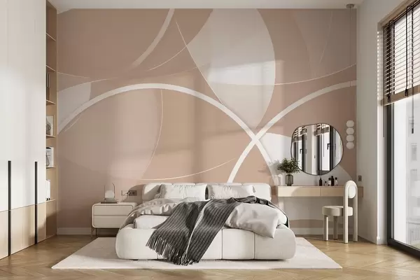 Murais de parede Abstração geométrica em tons de bege e rosa com círculos e semicírculos Nr. w09085