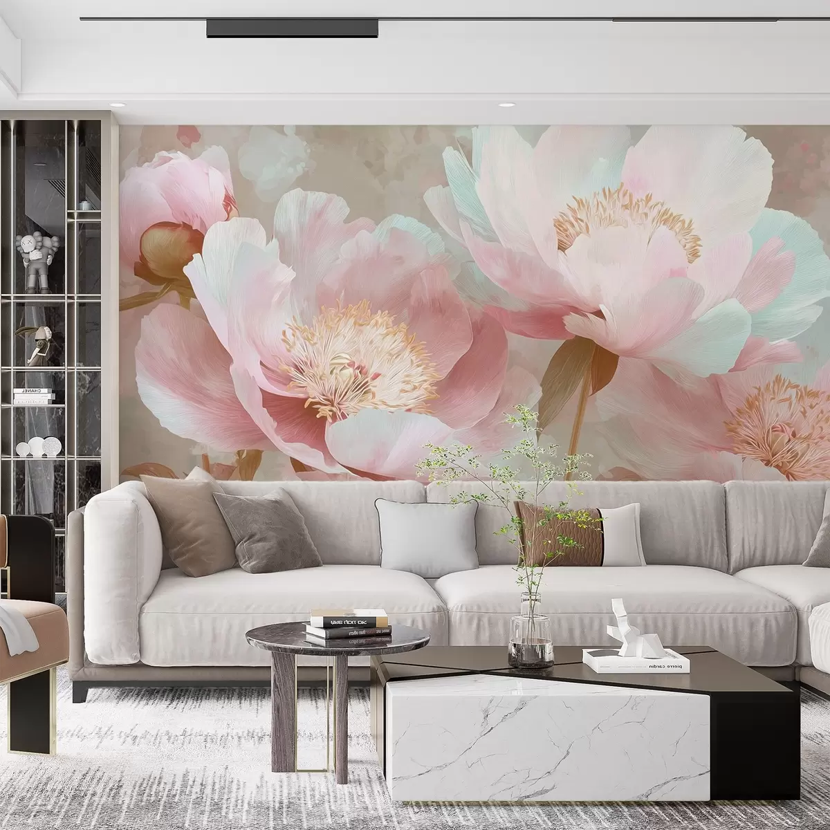 Murais de parede Peónias delicadas em tons de rosa e bege Nr. w09087v1