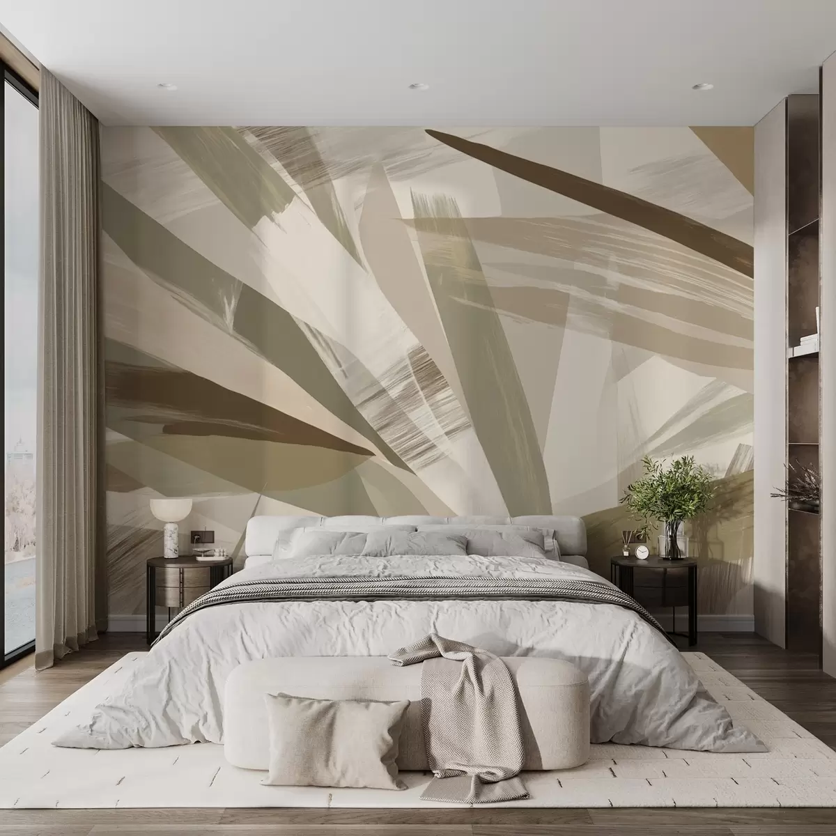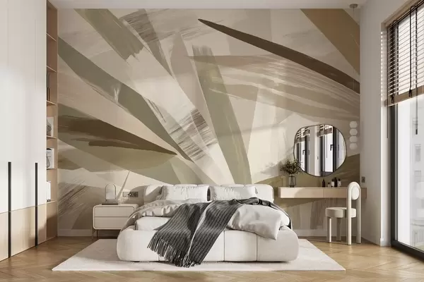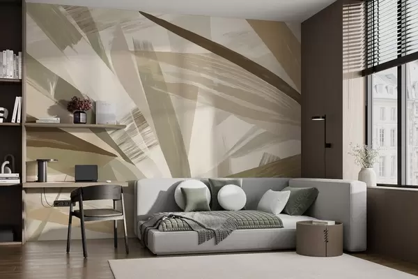 Murais de parede Folhas abstractas em tons de verde e bege Nr. w09091