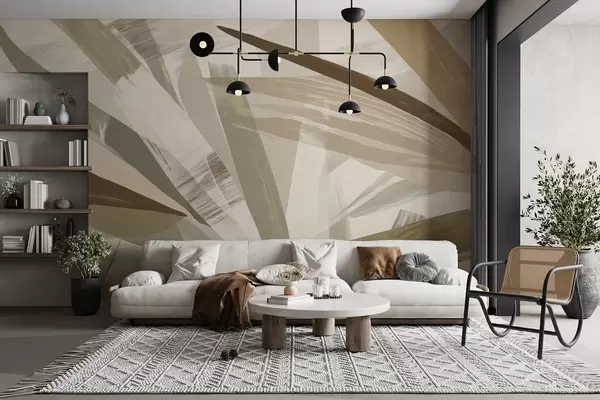 Murais de parede Folhas abstractas em tons de verde e bege Nr. w09091