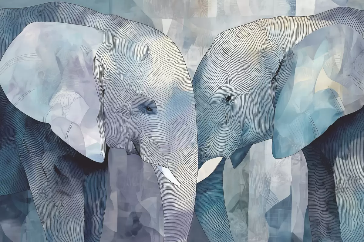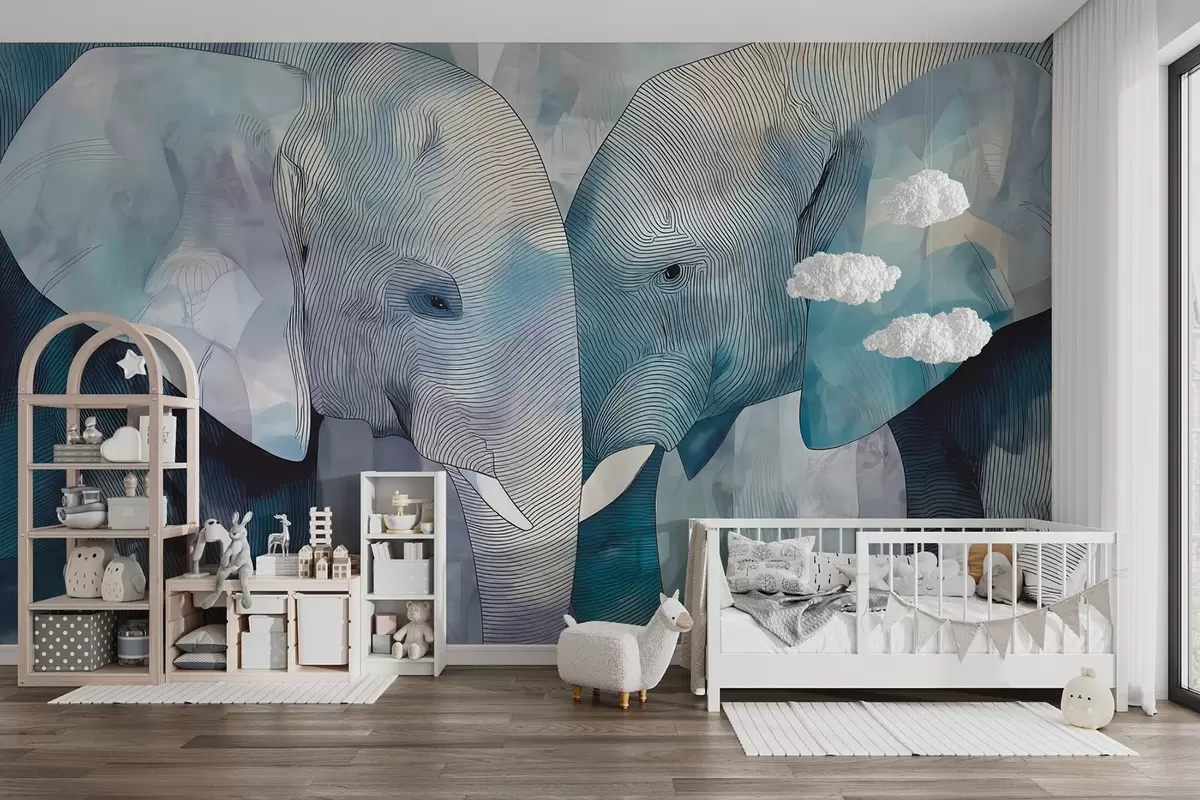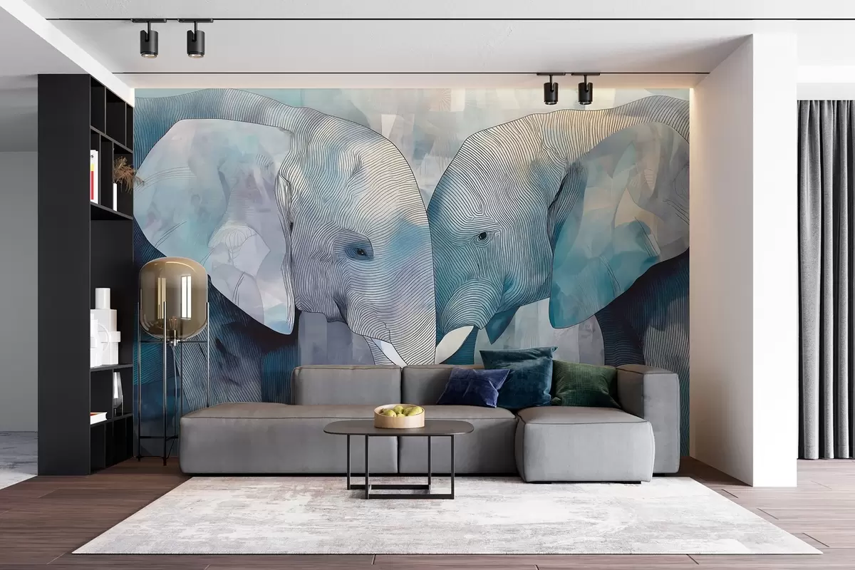 Murais de parede Elefantes azuis giros em estilo aguarela Nr. w09098